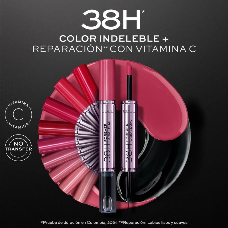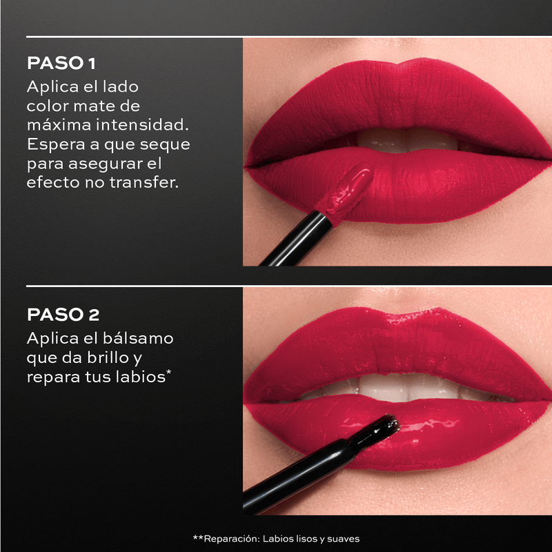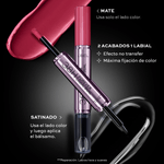 Es un labial intransferible dual de extrema duración con bálsamo labial para máxima hidratación. 5 gr. (1.6 x 1.6 x 13.1 cm)